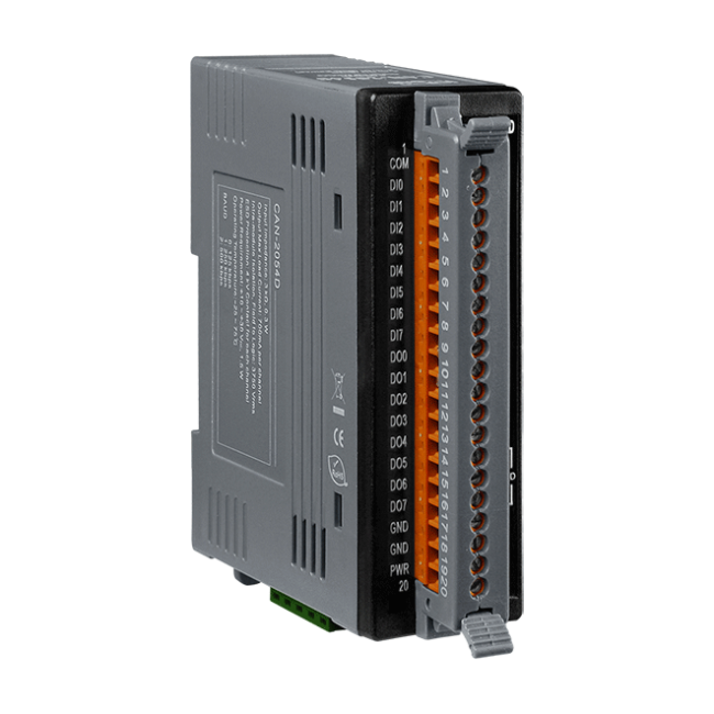 CAN-2054D是DeviceNet 從站模組,遵循Volume I/II Release 2.0 DeviceNet規範,能透過標準的 DeviceNet 協定設定CAN-2054D的組態或存取數位輸出或輸入通道的狀態。模組本身也提供標準的EDS檔案。 因此,用戶可以藉由這個檔案輕易的與DeviceNet主站介面連結。CAN-2054D模組擁有 8 通道隔離型數位輸出與 8 通道隔離型數位輸入,能被運用在各種不同架構上,例如 PNP、NPN、TTL、繼電器等。