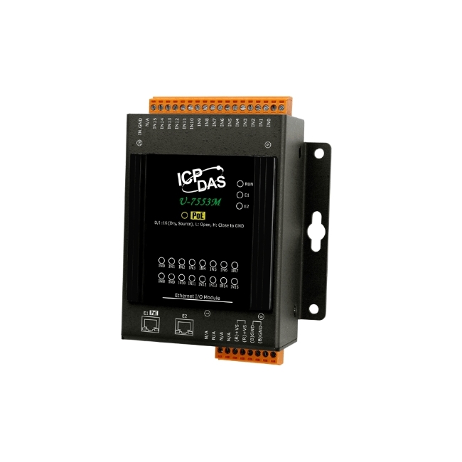 U-7553M 是一款配有 16 組 DI 通道 的遠端模組。在工業物連網通訊支援上提供 OPC UA Server 及 MQTT Client 功能,讓用戶可依需求及環境選擇連網方式,方便將內建 I/O 通道的數值交由雲端系統或現場端控制系統呈現、分析或決策。提供雙乙太網口 (Dual-port Ethernet switch),可用於建構 Daisy Chain 網路拓墣,可簡化線路配置與維護的複雜度,降低佈線成本與交換器的需求,提高網路擴充性。並遵照 IEEE 802.3af 標準 (classification, Class 2) 中的 Power over Ethernet (PoE) 規範,可在 PoE 網路環境下透過網路線(Category 5) 傳送電力。此功能提供了更大的靈活性及效率以簡化系統設計、節省空間並減少電線及電源插座的需求。使用者可透過網頁操作界面設定模組組態、控制模組的輸出通道、監視模組連線與 I/O 狀態,過程簡單且快速並且無須額外安裝軟體。