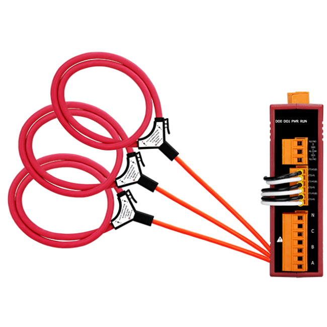 泓格科技(ICP DAS)為您提供最強大且具成本效益之智能電錶 PM-3133-RCT 系列,讓您可取得即時的三相電力系統量測資訊。因其具備高精度(<2%, PF=1; Input Current >50A)之特性,羅氏線圈是一種容易安裝的繩索樣式的比流器,適用於大電流500A〜4000A 量測 (但不適合精確的低電流測量),大的導線線徑及狹小空間的安裝(例如傳統鐵磁性材料比流器無法測量時,用軟式羅氏線圈電流感測器可以方便地測量)。輸入電壓範圍 10〜500 VAC,可相容於各國電壓規範。支援 2 路繼電器輸出,它可以與警報器或燈控整合,於電力量測資訊出現異常狀況時發出警報訊息。同時可支援Modbus RTU、Modbus TCP協議或是CANopen協議,方便進行電力監控系統整合。