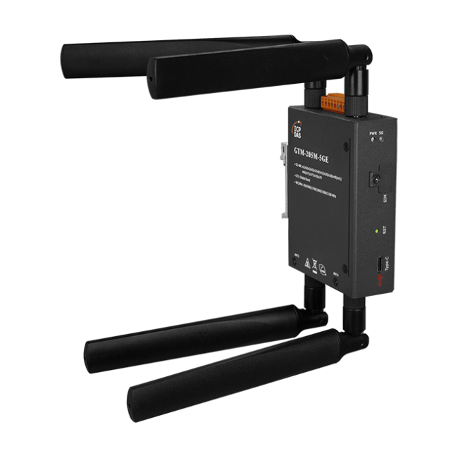 GTM-205M-5G 是一款具有 USB Super Speed Plus 介面的工業級 M2M 數據機。支援5G NR n1/n2/n3/n5/n7/n8/n12/n20/n28/n41/n66/n71/n77/n78/n79 和 FDD Global Bands 和 WCDMA B1/B2/B3/B4/B5/B6/B8/B19。GTM-205M-5G 利用便利的3G/4G/5G 網路來監控遠端設備、各種流量計或即時的遠端控制。內建 TCP/IP stack,只需搭配簡單的控制命令即可連線上網。GTM-205M-5G 的特色在於支援標準 AT 指令,可以輕易搭配多種 PLC 和 PC 來實現簡訊的收送和 5G/4G/3G 連線。